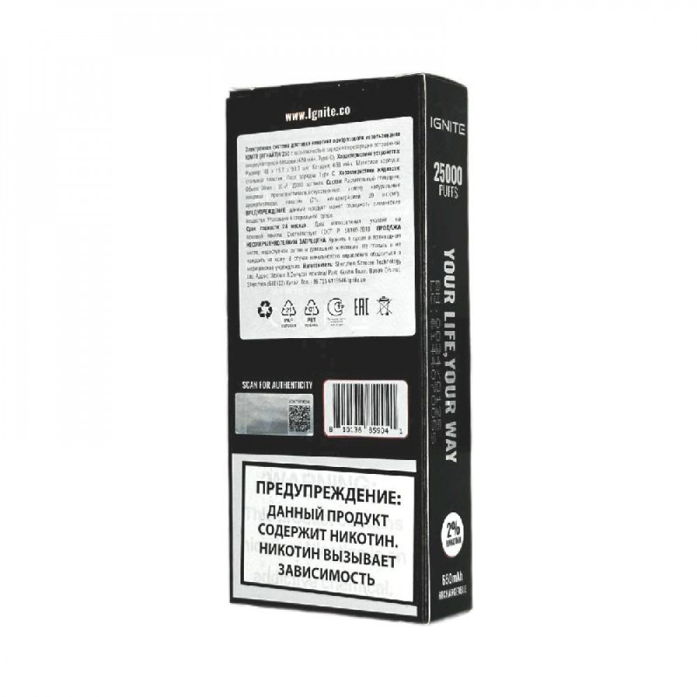 Технические характеристики Электронная сигарета Ignite V250 Black 25000 - Sweet and Sour Pomegranate (Кисло-сладкий гранат)
