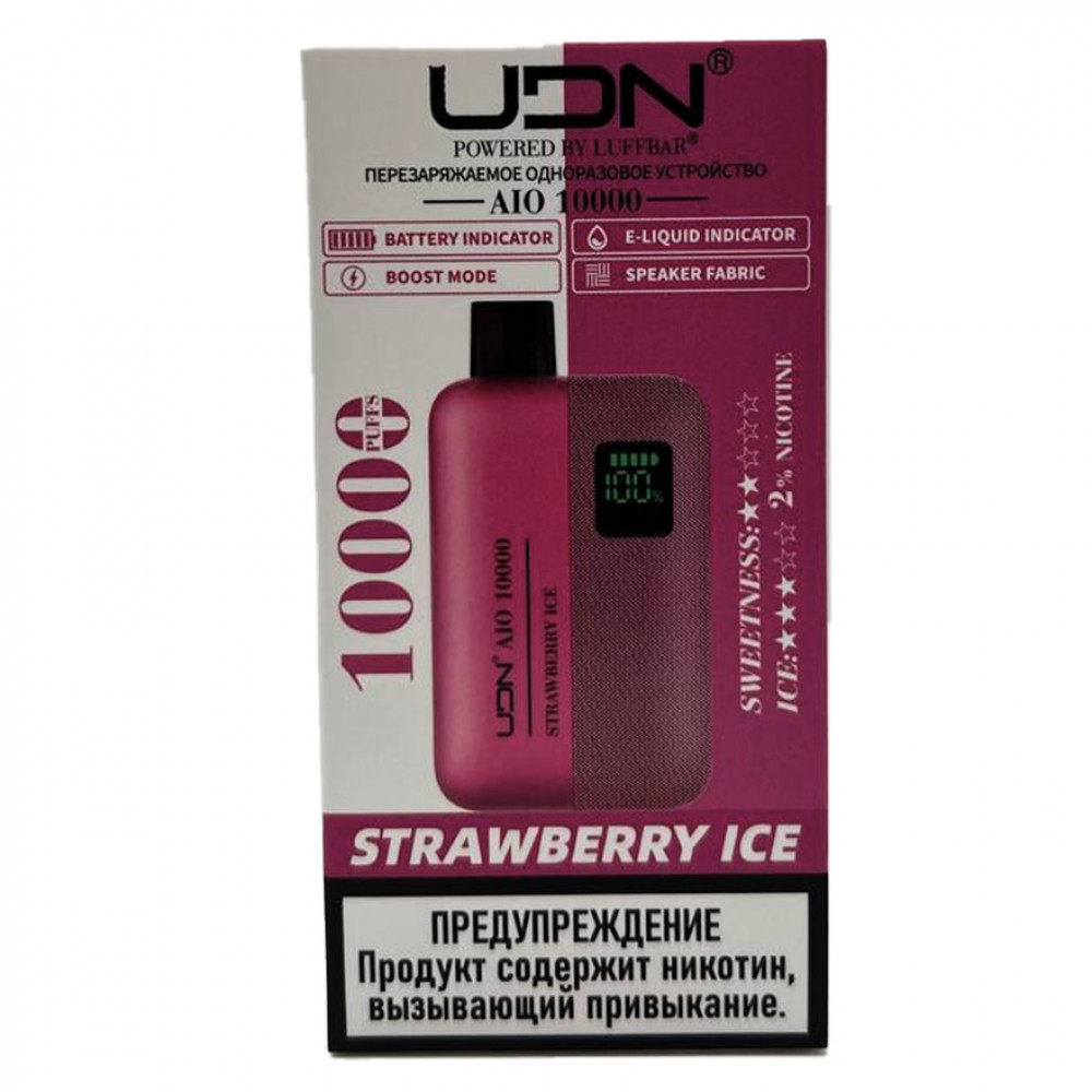 UDN видыAIO 10000 UDN вкусыКлубника Лёд UDN количество в блоке10 шт